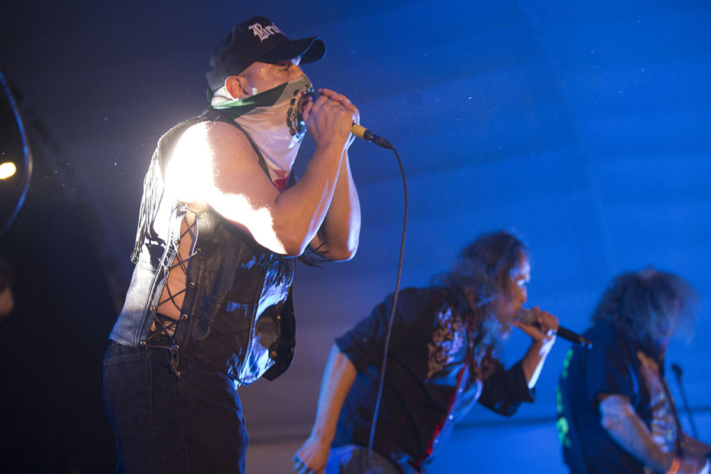 Así, Juan Brujo y compañía, hicieron retumbar el recinto, mientras emitían constantes proclamas y burlas en contra del presidente norteamericano, con lo que provocaban la reacción eufórica de los asistentes.