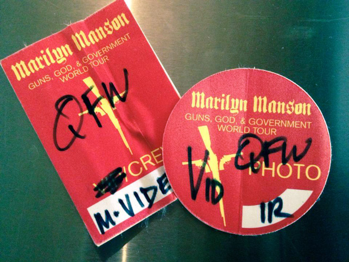 En lugar de eso, le entregué un regalo. Antes de salir de México había grabado un VHS con el programa que Eugenio Derbez hizo del personaje de Marilyn Menson, inspirado en él. Fue un especial de una hora donde actuaban algunos músicos de rock o mandaban saludos a “Menson”. Fue una suerte que repitieran ese programa y pudiera grabarlo. Hay periodistas que acostumbran llevar regalos a los artistas, pero casi siempre les llevan Tequila o alguna cosa típica mexicana. A mí se me metió en la cabeza llevarle ese programa y se me hizo.