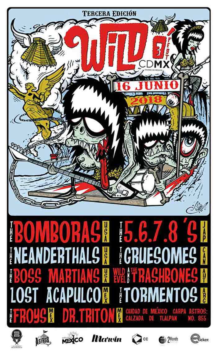 The Bomboras, The 5,6,7,8’s, The Neanderthals, The Gruesomes, The Boss Martians, Wild Evel & The Trashbones y The Tormentos son las bandas internacionales que encabezan este festival de garage surf que nuevamente se realizará en la Carpa Astros este 16 de junio.