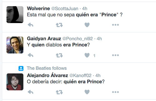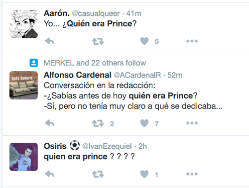 Mejor daremos nuestra versión de por qué Prince, también conocido como O(+> será trending topic mundial unos cuantos días y, tal vez con suerte, trending topic nacional unas cuantas horas, antes de que el grueso de los millennials regrese a whatsapp a seguir enviando emojis.